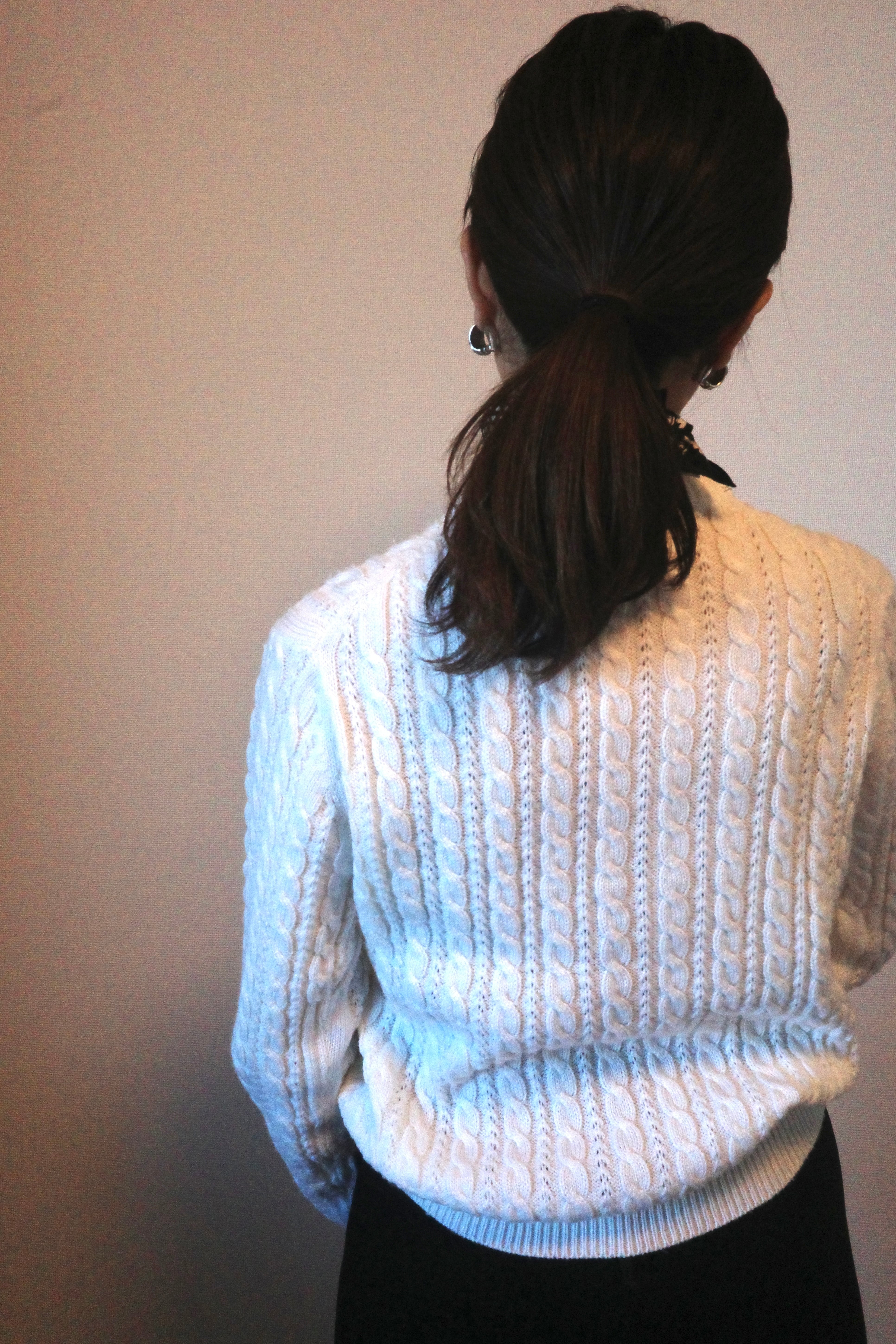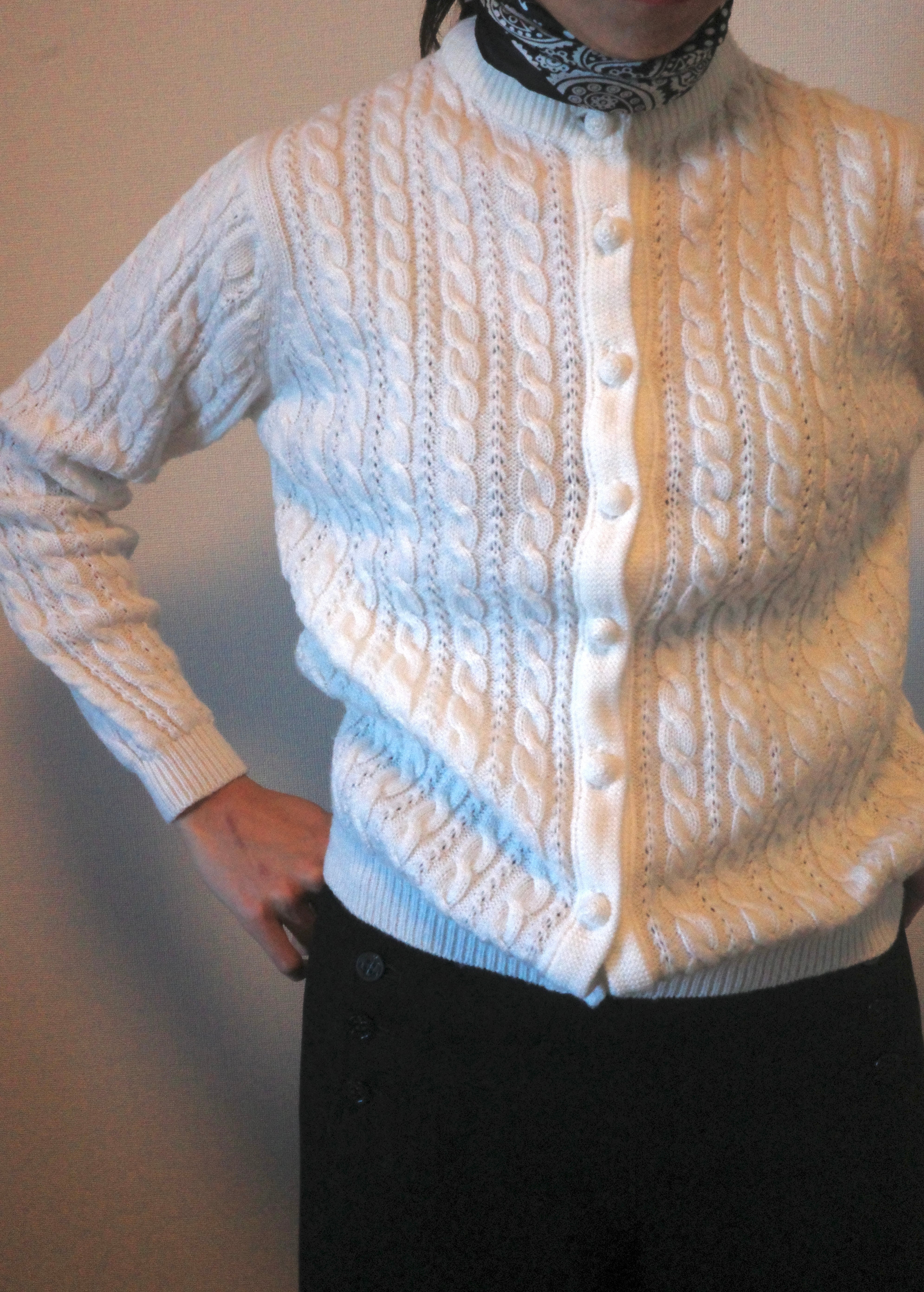 90's White cableknitcardigan